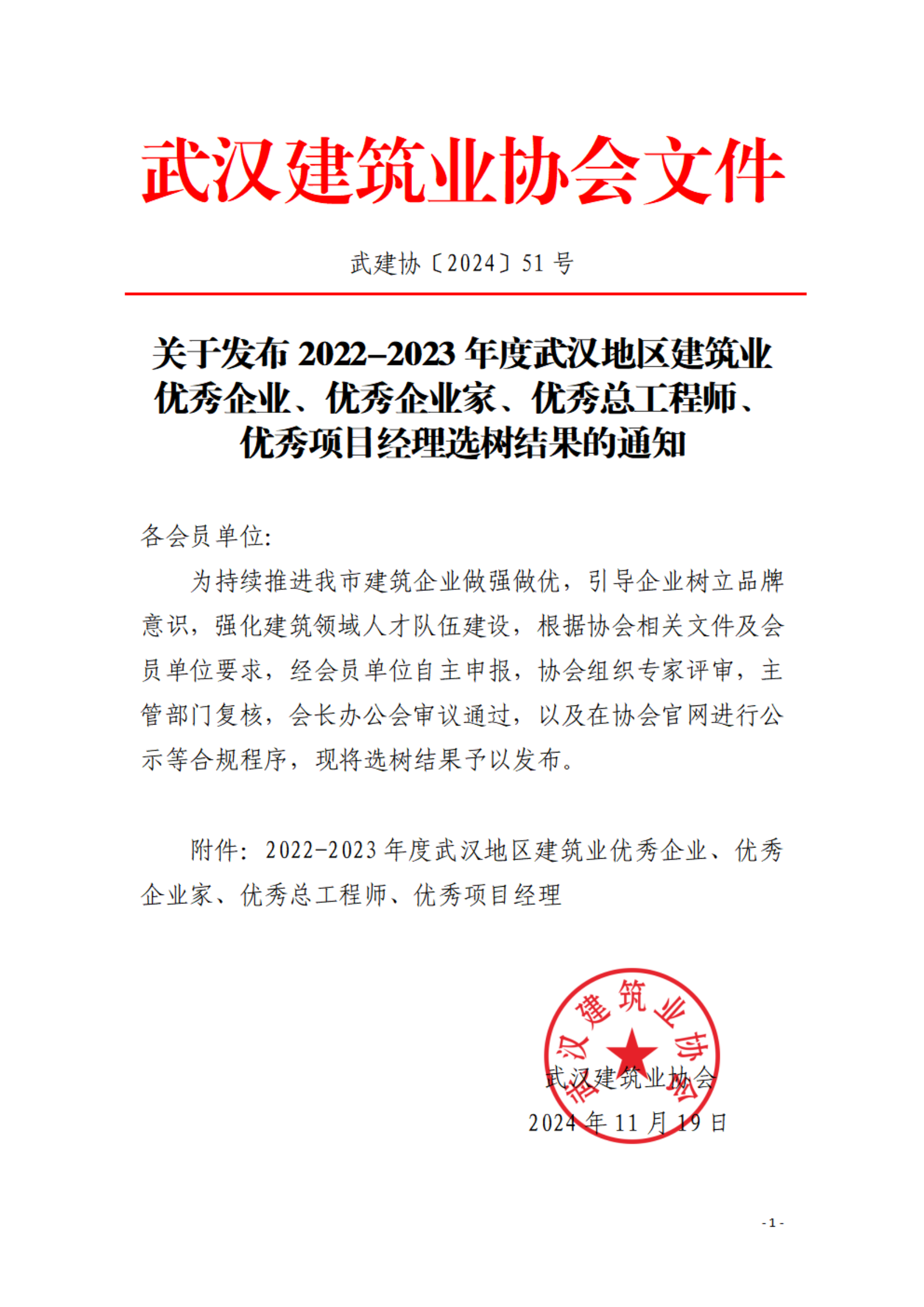 - 2024-11-22湖北省建工第五建設(shè)有限公司榮膺2023年度武漢市最具成長(zhǎng)性民營(yíng)建筑企業(yè)...[圖]